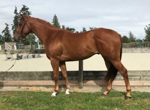 Breeze is an unraced Thoroughbred that is as quiet and easy as they come. With his willing attitude, hunter movement, and easy jump, Breeze shows great potential as a three-ring competitor. In 2019, Breeze attended his first horse shows at Amberlea Meadows where he showed in the 2'3" and 2'6" hunter divisions – despite the uncooperative weather creating crazy warm up rings, driving winds, and torrential rain, Breeze acted like he had been showing his whole life! Competing against seasoned horses, he even managed to bring home some pretty ribbons, including a championship at the River City Horse Show and a provincial top 20 finish in the Jump Alberta 2'6" Pre-Child/Adult Hunter division. We are very excited to continue to develop this young horse and see what he can do! Make sure to keep an eye out for Breeze in the upcoming 2020 show season.