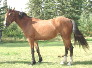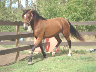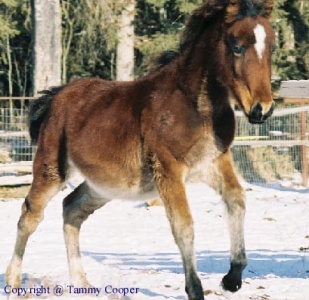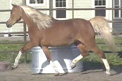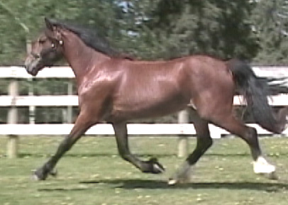 Cusan is a beautiful bay filly that spent her yearling summer travelling and competing at several horse shows. She has been grand champion on the line. Cusan has gorgeous welsh movement, with a phenomenal, floaty trot. She has a very promising future in the performance world. Cusan was part of the Welsh Demonstration Team for the Welsh Breed at the 2005 Masters Tournament at Spruce Meadows. She handled all of the excitement and activity like she had done it many times before! Cusan should mature at 15 HH.