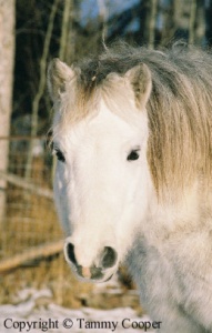It is with a very sad heart that we announce the sudden, tragic passing of our beloved pony, Joy. On March 16, 2006 while returning home from vacation, we were pulling our horse trailer with our 2 young cobs and Joy. A car crashed into us on the highway, causing significant damage to our 1-ton pick-up, and demolished our horse trailer. While the cobs survived the crash with minor stiffness, Joy suffered a fractured spine and ultimately had to be euthanized at the scene.